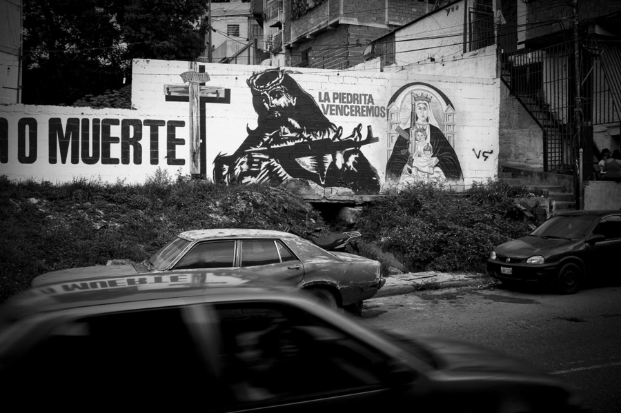 A mural depicting Jesus Christ with a machine gun adorns a wall in the 23 de Enero slum, a violent and crime-ridden neighborhood in Caracas, Venezuela, that is a bastion of support for President Hugo Chavez.